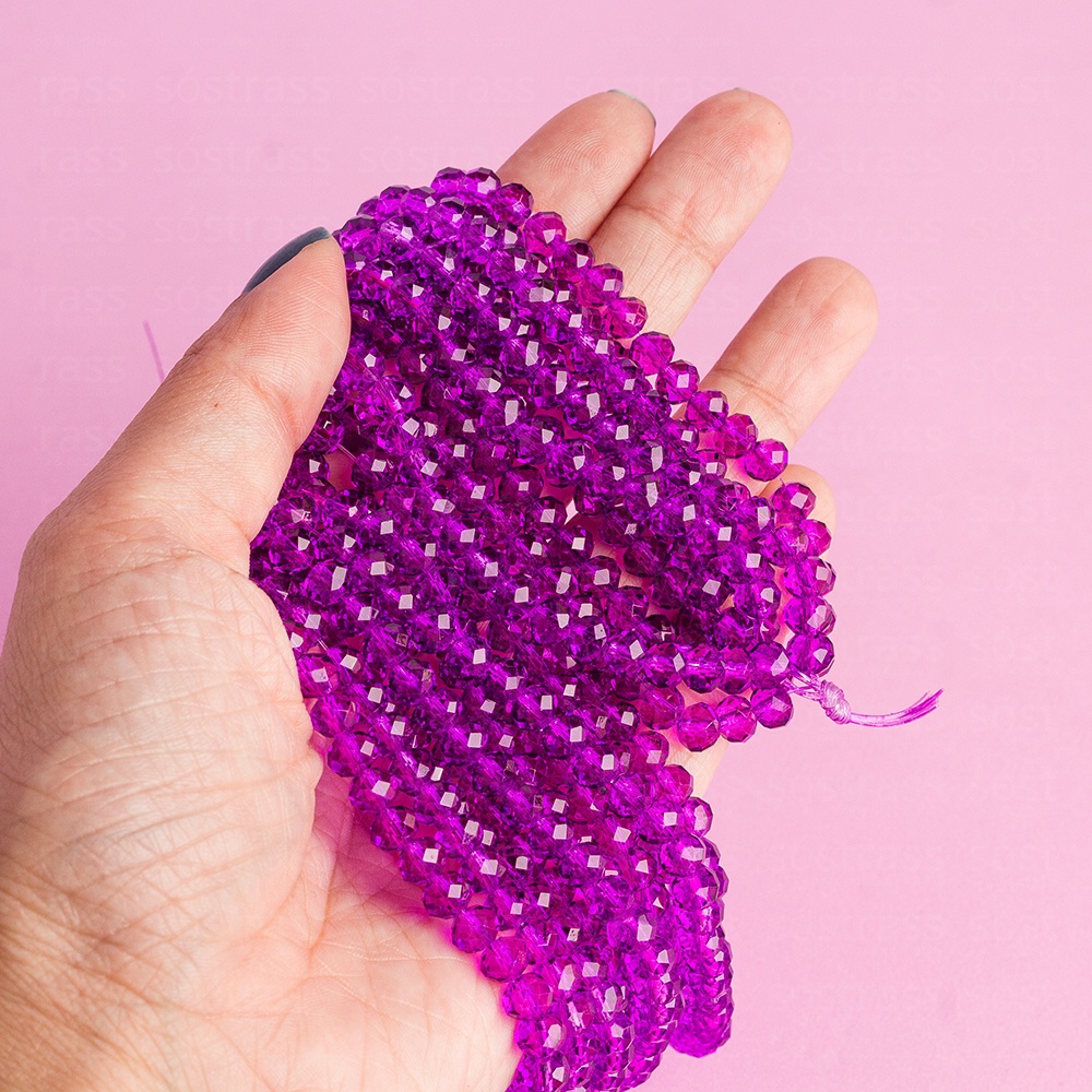 Fio de Cristal Facetado 6mm Lilás. 10 Fios – 830 Peças