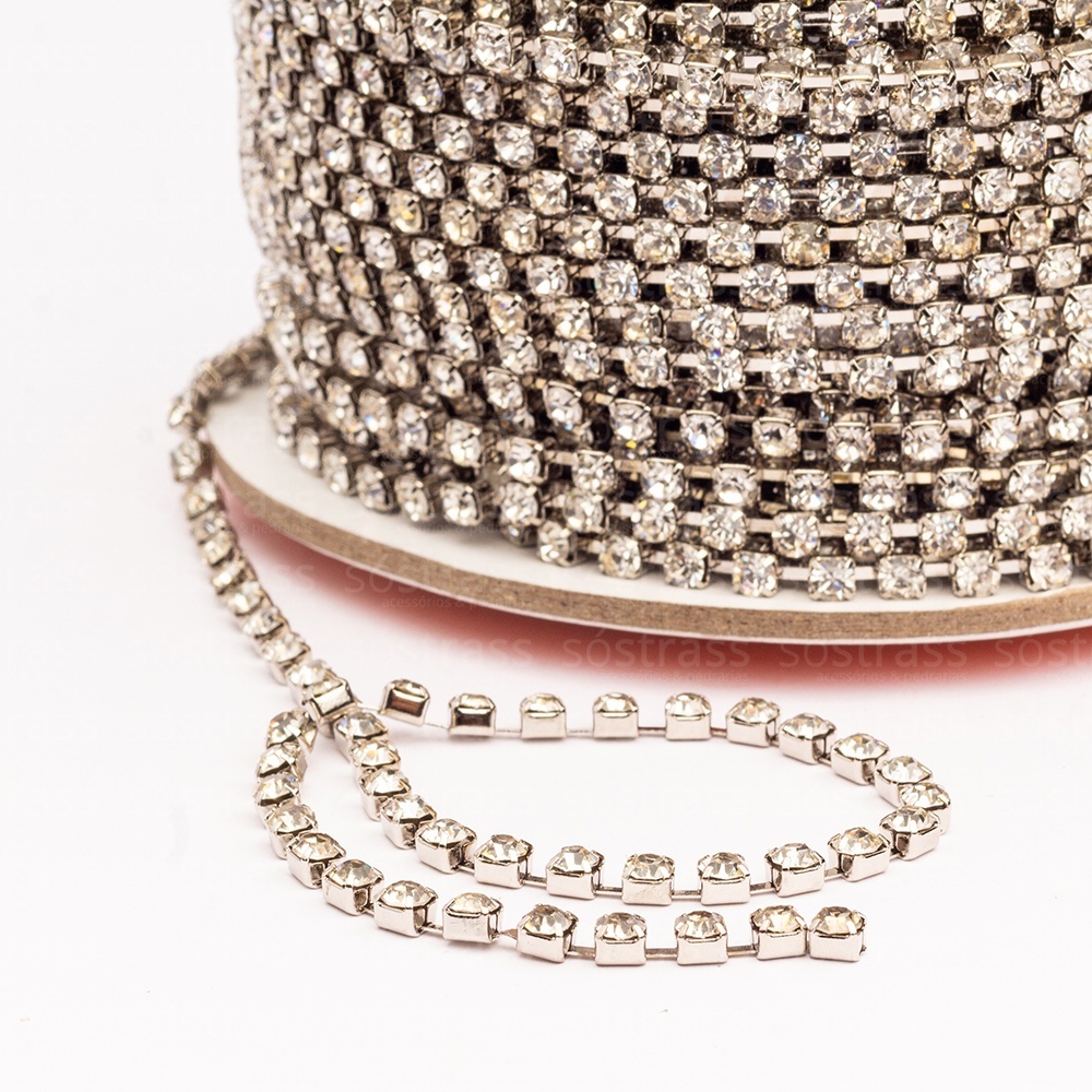 Rolo Corrente de Strass SS29 Cristal Banho Prata – 20 Metros