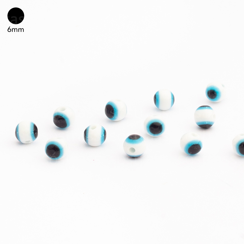 Miçanga Olho Grego 6mm Brancos. Produzida em resina de alta qualidade, conta com furo passante que facilita a aplicação em diferentes tipos de fios, elásticos e cordões, garantindo praticidade e resistência no uso. O tradicional símbolo do Olho Grego, conhecido por afastar energias negativas e atrair boas vibrações, aparece aqui em uma versão Branco, trazendo ainda mais charme, alegria e versatilidade para suas produções. Ideal para confecção de pulseiras, colares, tornozeleiras, chaveiros, lembrancinhas e uma infinidade de acessórios artesanais.